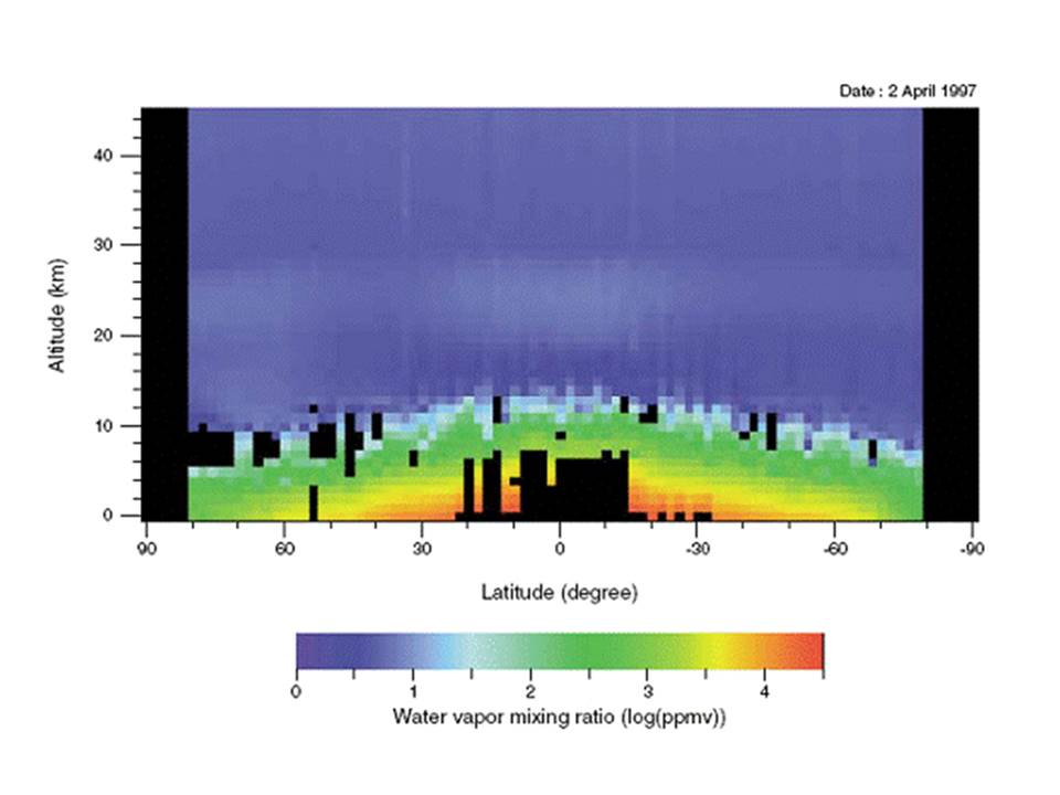 the tropopause, about 8-14 km, of the population density of water vapor (WV)